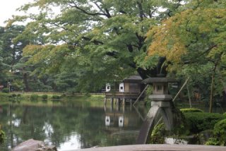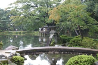 早めに食事をして出かけた、目指すは「兼六園」である。が朝の渋滞に巻き込まれ遅れた。 駐車場は小型車ではなく大型観光バスと一緒の駐車場、係のおじさんが優しく誘導してくれる。 公園の入り口を聞き、出かけた。 入園料300円パンフレットをもらい、回り始めたがまずはパンフレットに載っている写真を見てそこに出かけていった。 |