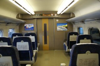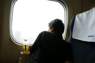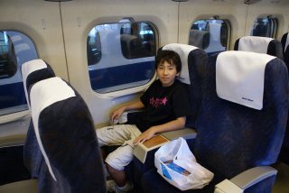 | 初めて乗る新幹線に孫は興奮気味、車内は奇麗でゆったり座れるのでゆっくり出来る。飛行機であれば足下が狭く感じるが、その様なことはない。外を見ている孫は「意外とスピード感が感じない。」と言っていたが、外の景色をしきりと見ていた。 |