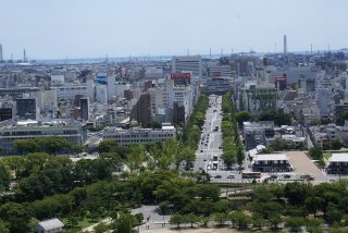天守閣から、姫路駅を望む(正面) |