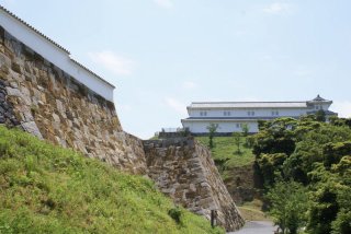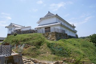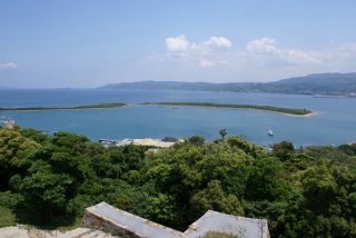 | 通詞島から富岡城までは程なく着いた。遠くから見て奇麗であった、何時再建されたかは、調べて(2005年)と書いてあった。 |