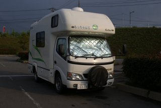 大阪の方で飛行機で熊本に着きレンタカーで廻っておられ、キャンカーをすでに発注されておりオプションを聞いてきたのである。