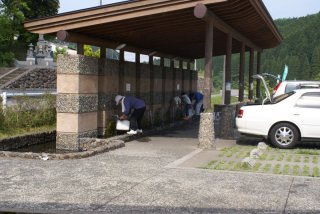 水の駅には大勢の人が車のトランクから、水タンクを出し汲んで行っている。