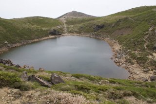 ここから、目の前に見えている天狗ヶ城へ向かった、登りはきつい、また横に御池が見え一寸怖い。