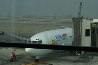 クスコ行きの飛行機は、スターペルの737−500(ドルフィン)である。