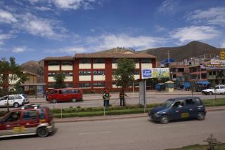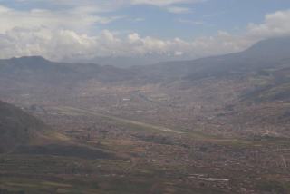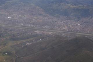 クスコは盆地の中にある、上空から空港の位置がよく分かる、町のど真ん中にあるのがよく分かる。