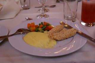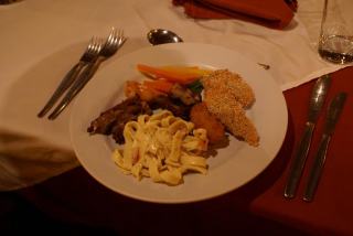 夕食はバイキングであったが、なかなか食べ物が合わない。 |