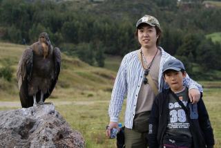 | 大学で飼育されているコンドルです、時々資金稼ぎにやってくるという。それでもコンドル、おっかなびっくりでカメラに収まっていた。 |