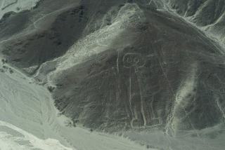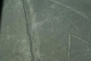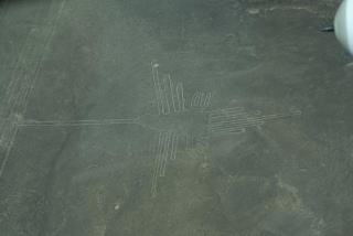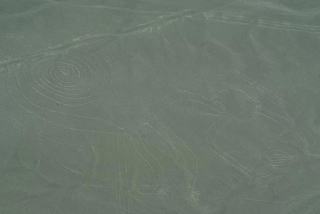 離陸して約20分後にナスカ高原上空、副操縦士が絵を一つ一つ説明してくれる。 |