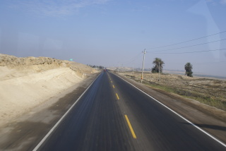 砂漠の中のハイウェイ−を走る、ドライバを神経を使う。なぜならば高速道路と言っても、右から左から車が入ってくる。 |