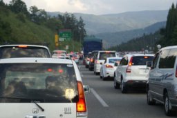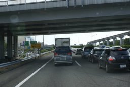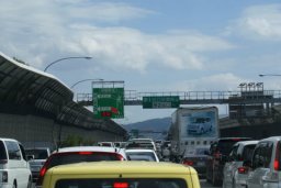 宝塚を過ぎ、吹田に入りと一団と車の数が増えた。反対側車線(九州方面下り線)は大渋滞である。