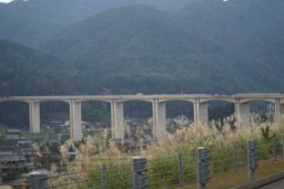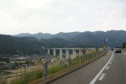 名神高速から東海北陸自動車道へ入る。最初は都市部を走るので高架で防音壁で目隠しのようだ。